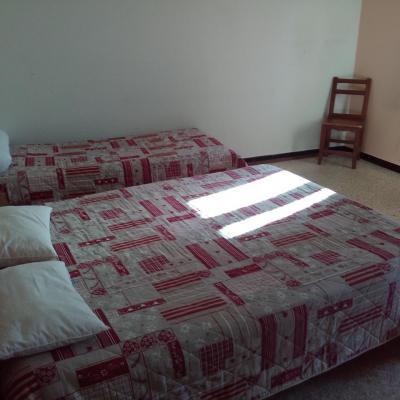 En chambre famille de 3 à 5 places (1 lit de 140 + lit de 90 ou et lit superposé) avec salle de douche, WC dans le couloir, linge de lit mis à disposition à restituer en fin de séjour, linge de toilette non fourni (location possible de serviette sur place)